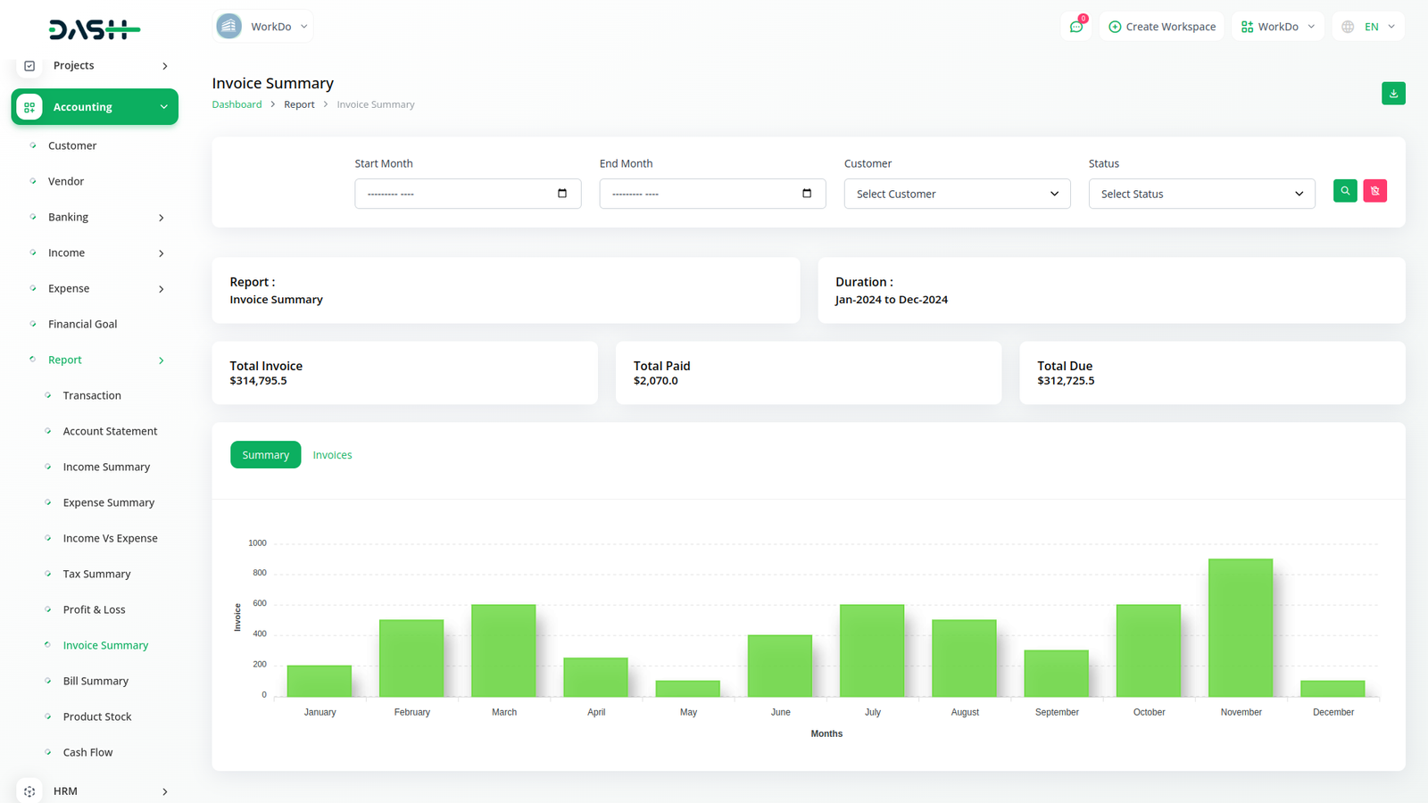 Kolay filtreleme seçeneği ile işlemlerinize ilişkin rapor alın. Gerekli hesap özetlerini PDF, CSV veya Excel formatında indirin. Bireysel Gelir, Gider, Vergi, Fatura ve fatura özeti hakkında usulüne uygun olarak hazırlanmış raporlar alırsınız. Bunları Hesap, kategori ve müşterilere göre filtreleyin. Ayrıca, Gelir VS Gider grafiğinin grafiksel gösterimi ve Kâr ve Zararın ayrıntılı hesaplaması, bilinçli kararlar almanıza yardımcı olacaktır. Vergi özetini ve Gelir VS Gider grafiğini mali yıllara göre filtreleyin.