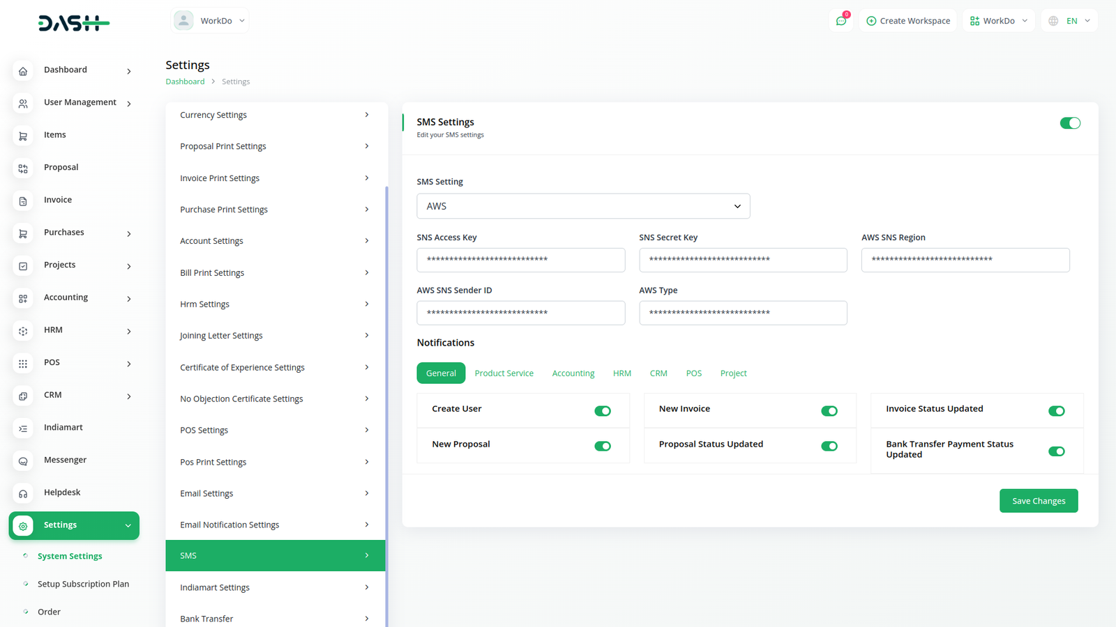 SMS Notification With Workdo Dash